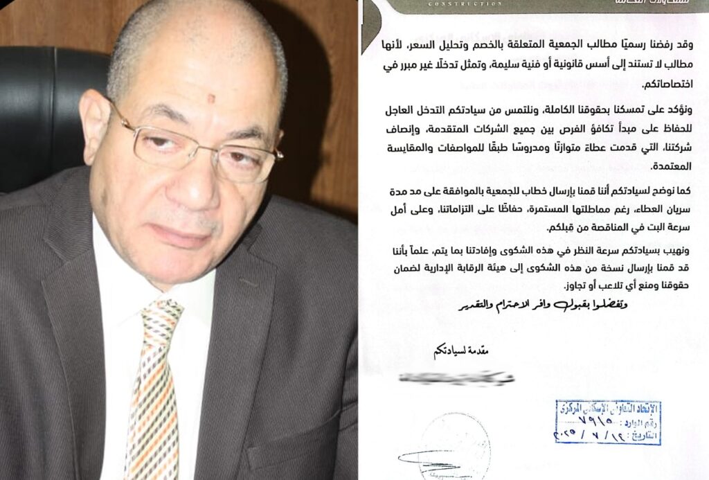 وأوضحت الشركة في شكواها، أنها تقدمت للمناقصة بتاريخ 15 مارس 2025، ونافست على تنفيذ 5 عمارات سكنية، وكانت الأقل سعرًا بفارق كبير، وعلى الرغم من ذلك، فوجئت الشركة بمطالب غير منطقية وغير قانونية من قِبل الجمعية.